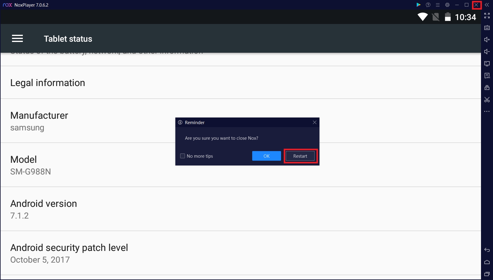 👉 Click the “X” at the top corner of the screen and select “Restart”.